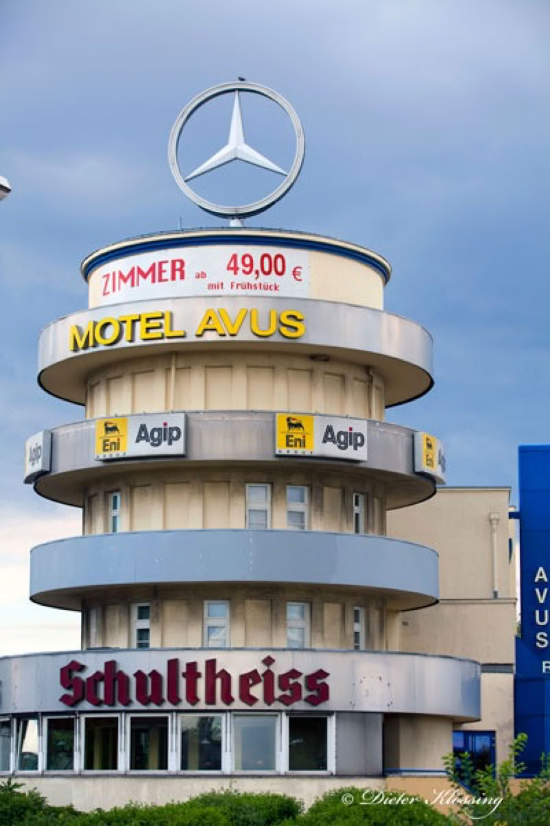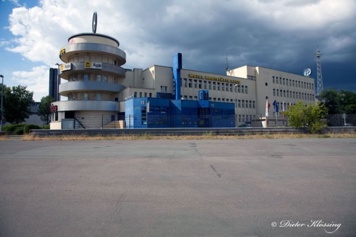 Noch so ein Relikt aus vergangener Zeit: Die AVUS, die AVUS-Tribünen, die Nordkurve und der Mercedesturm.