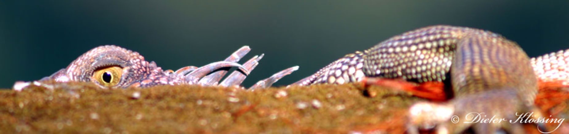 Herunter kam die Iguana nur am Nachmittag, wenn es relativ ruhig war. Er sprang dann auf eine 2 m hohe Mauer und frass von den Blättern dort. Das war 2003. Ein Jahr später ist das Nachbargelände gerodet und die vielen Echsen, die bis an den Frühstückstisch kamen, sind verschwunden.