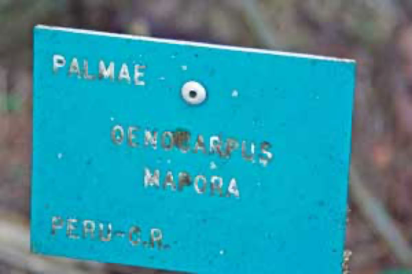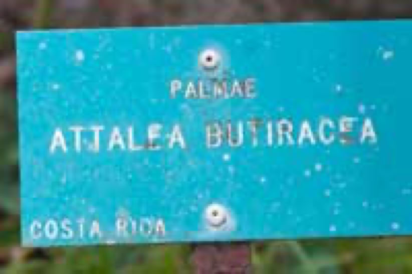 Die Fischschwanzpalme (oder auch Brennpalme) - Caryota giga wär ohne die blauen Schilder hier im Jardin Wilson nicht zu identifizieren gewesen.