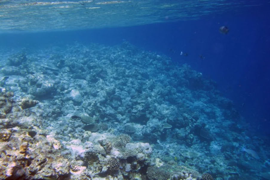 2003 gab es immer noch keine Korallen auf dem Riffdach - hier (Bild oben) nördlich der Sandbank.