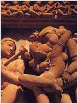 Im Sommer erreicht die große Luftströmung, die als "El Niño" begann und jetzt Monsun genannt wird, die Südspitze Indiens. Die Thermik über der aufgeheizten Landmasse reicht in höchste Höhen und die ersten Wassermassen stürzen auf das ausgedörrte Land und kühlen es ab. So schiebt sich der Monsun weiter nach Norden bis er endlich Bombay erreicht und sich weiter bis ins Gangestal wie eine Walze vorgearbeitet hat. Dort treffen die restlichen Wassermassen und die erwärmten Luftschichten auf die Kühle des Himalajas und sorgen für die stärksten Gewitter, die man erleben kann. So erhielten übrigens dort die als Liebestempel von Khajuraho bekannten Bauwerke ihre erotischen Darstellungen. Da die Göttin des Donners in der indischen Mythologie eine Jungfrau war, sollte sie sich voll Scham abwenden und die Bauwerke verschonen (kleines Bild links).
