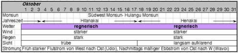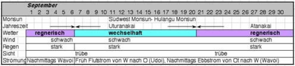 Man sollte nicht im Herbst auf die Malediven fahren. Nicht nur die vielen Wolken stören unsere Vorstellung vom Sonnenparadies am Äquator, sondern auch die Sicht unter Wasser ist, wie die nachfolgenden Strömungskarten veranschaulichen, schlecht. Dieser lange andauernde Monsun war mit Schuld am Korallensterben im Indopazifik, einer der weltweit größten Umweltkatastrophen seit Jahrmillionen.