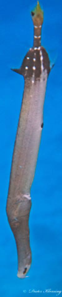 Es sieht aus, als bestände der Kopf nur aus der langen Schnauze, an dessen Ende das Maul wie das Mundstück einer Trompete steht. Trotzdem ist es ein ziemlich gefährlicher Räuber, jedenfalls für kleine Fische und Krebse.