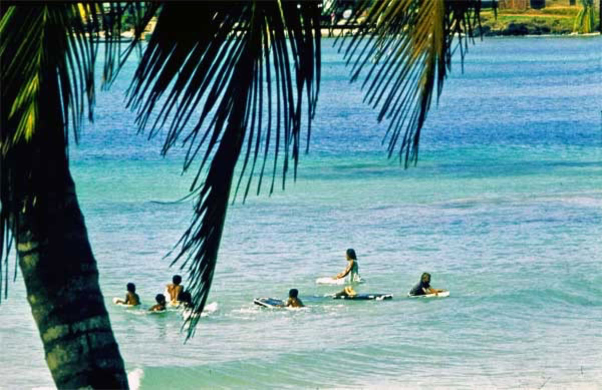 Dafür war aber das Nachtleben berühmt: Wenn es dunkel war trank man noch einige eiskalte Biere und fiel totmüde ins Bett. Die sandige Bucht vor dem Hotel hatte natürlich keine Korallen. Sie war ideal zum Schwimmen wie selten ein tropisches Gewässer. Strömungsfrei und dem Wind abgewand trieben keinen Quallen herein. Trotzdem gab es einiges zu sehen. Im 4 m Tiefe weiter draußen lagen große Rochen im Sand und wollten sich nicht aufschrecken lassen. um sie wenigstens einmal betrachten zu können.