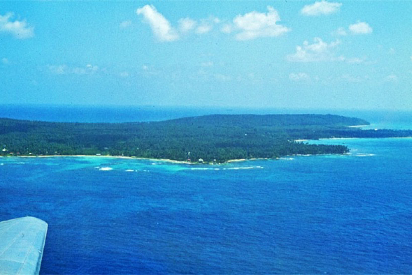 Flach zogen die ruppigen und lauten 12-Zylinder-Sternmotoren die Curtiss über das Wasser. Hinter den Mangrovensümpfen der Küstenlinie war es erst braun, wurde immer klarer und dann "algemarinblautürkis". Über hellem sandigen Untergrund waren oft Schulen von Haien zu sehen und in Minuten kam die Insel in Sicht .