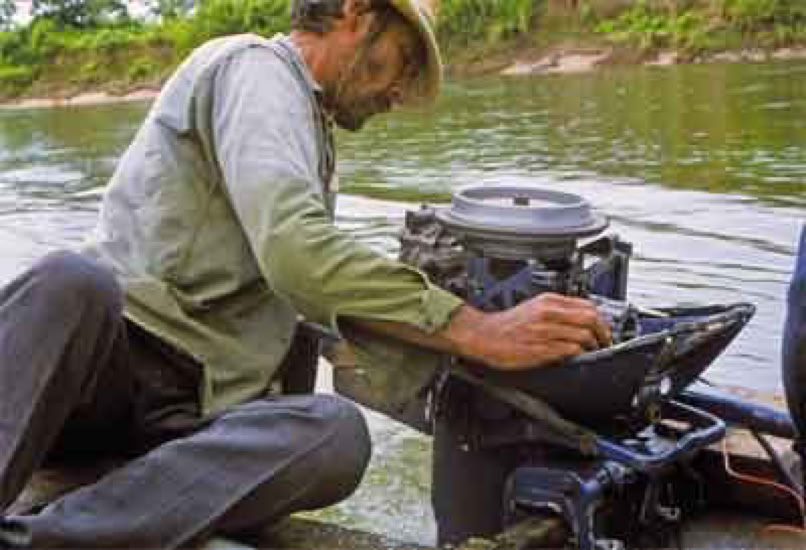 Der Motor hatte 17 PS. Jeder, der schon mal richtig auf dem Wasser war, weiß: Länge läuft! Der Outborder brachte den Baumstamm auf 30 km/h. Vorteil: Die Moskitos kamen nicht mit. Nachteil: Der Fahrtwind pfiff um die Ohren, machte den Schweiß auf dem Rücken eiskalt.