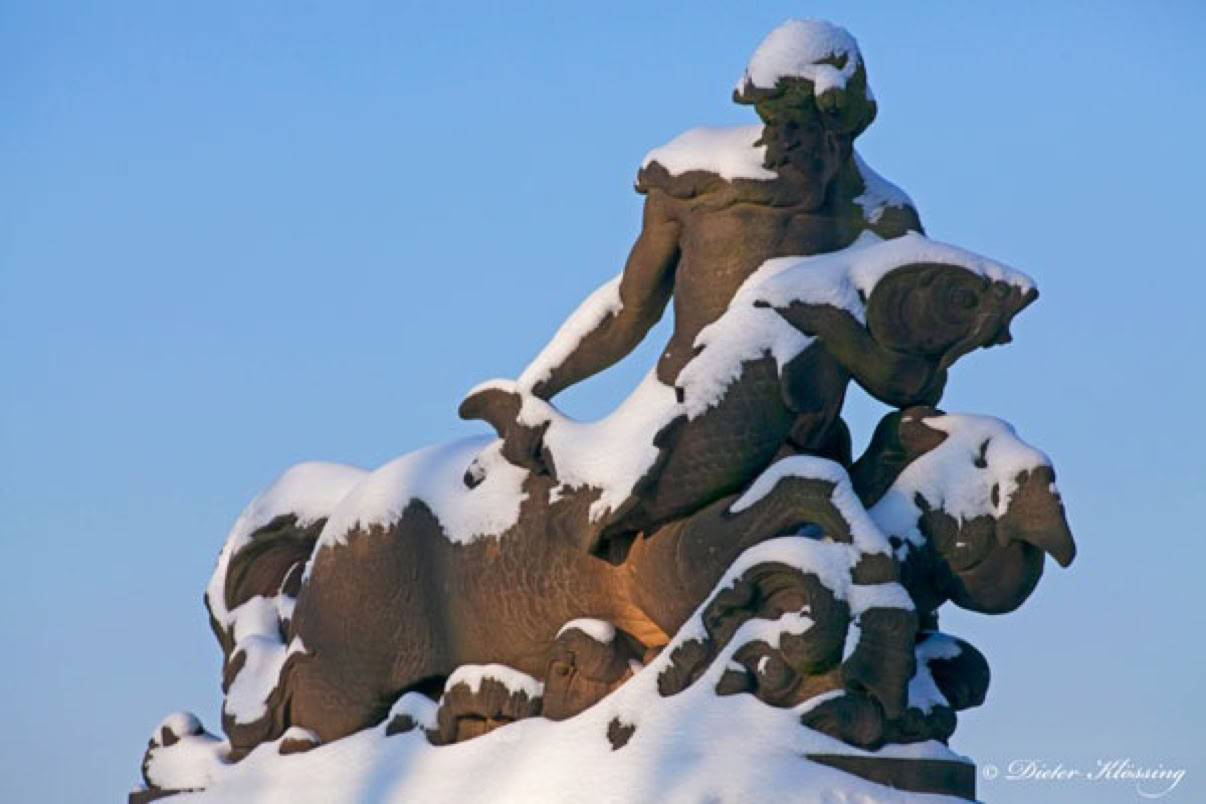 Ein Zentauer als Fischer dürfte ziemlich selten sein... Figur auf der Glienicker Brücke, Dez. 2010