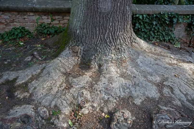 Sie hat ein ungewöhnliches Wachstum in den 146 Jahren vorzuweisen und ist kerngesund. Die Aufnahme ist vom Juni 2014. Sie hat in 1,5 m Höhe einen Stammumfang von 3,90 m. Ihre Wurzeln reichen bestimmt bis ins Grundwasser.