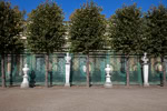 Slideshow (6 Bilder) von dem Gitterpavillon, den Kolonnaden und dem Westflügel des Schlosses Sanssouci.