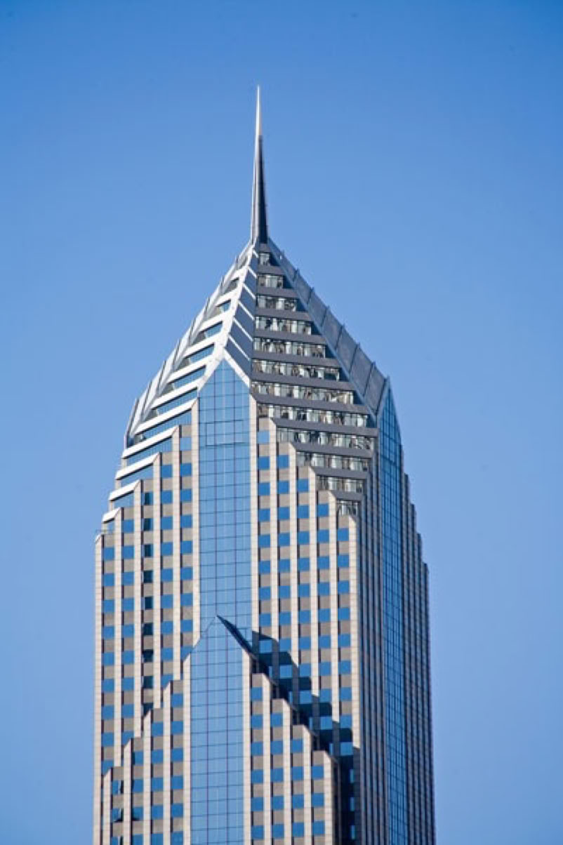 Manche Hochhäuser sind aber wirklich schön anzuschauen. Meist sind es die, die mit wertvollen Materialien gebaut sind. Das 303 m hohe Gebäude mit dem markanten Dach wurde 1990 fertig. Es ist das Two Prudential Plaza und hat 64 Stockwerke.