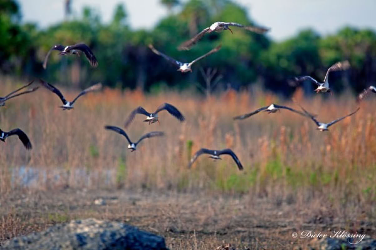 Der Blick kann in die Landschaft schweifen, Vögel - Ibisse jeden Alters - stieben davon - das Ende des Fakahatchee Parks ist erreicht...