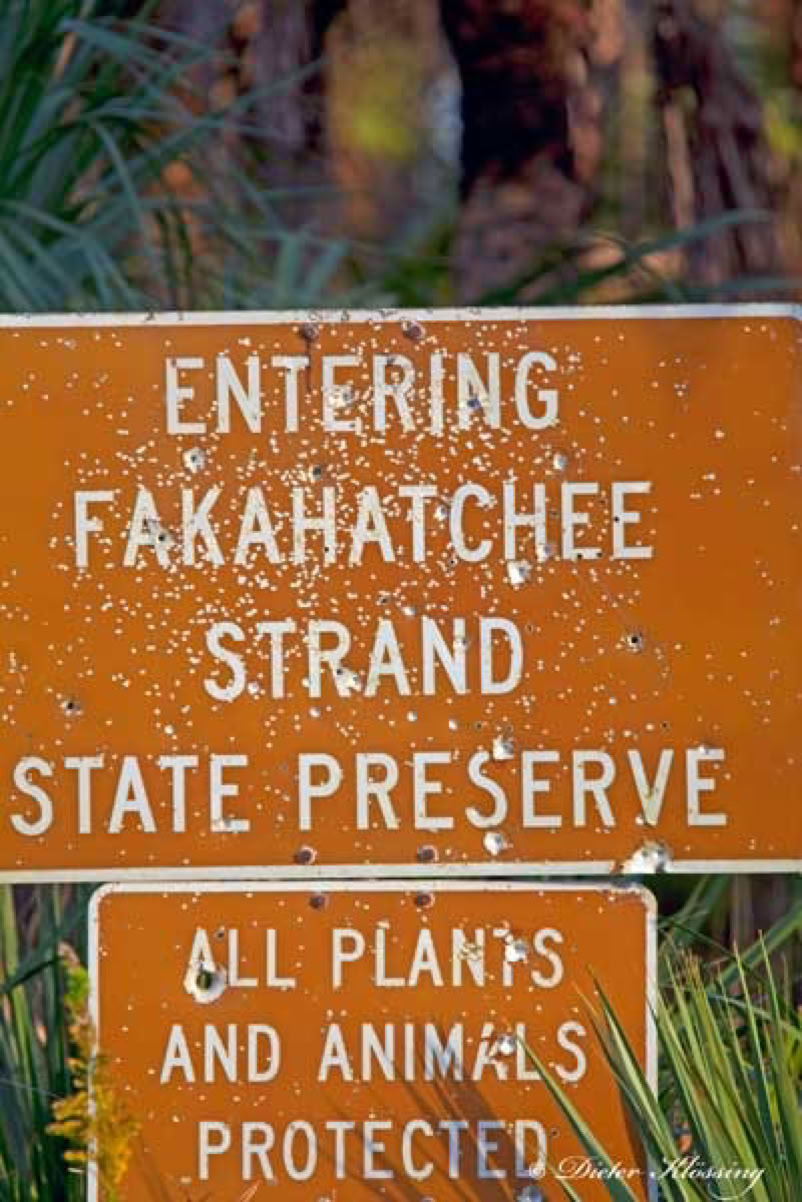 Trotzdem benötigt man eine Stunde um an das zerschossene Schild am Ende des Fakahatchee Parks zu kommen, ein paar Stopps eingeschlossen.