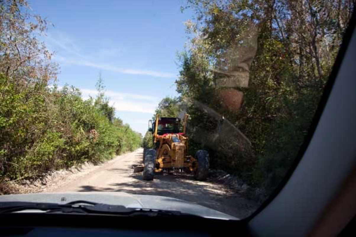 So wie hier. Dieser Weg - nirgends auf der Welt gab es je so einen guten ohne Beton oder Teer - kann mit 40 oder 50 m/h befahren werden, immer gerade aus.