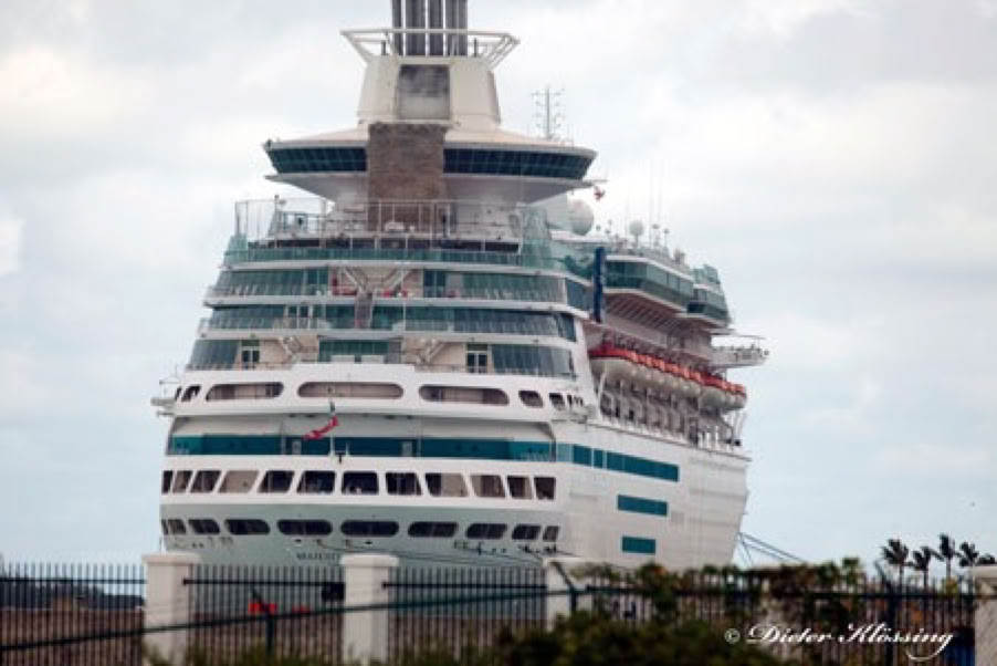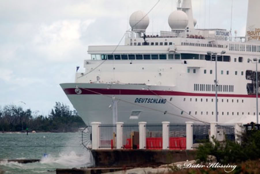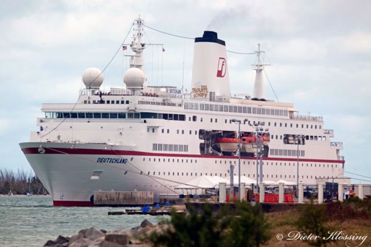 Kreuzfahrer in Key West. Die Deutschland, das "Traumschiff", in herkömmlicher Bauweise und ein moderner Kreuzfahrer, wie für Ostfriesen gebaut. Die wollen ja nach einem alten Ostfriesenwitz immer alle vorne sitzen. Aber warum man dem Kapitän eine Kletterwand vor die Nase gesetzt hat, ist unbegreiflich. Alle Passagiere auf dem Dampfer waren (gefühlt) über 75 Jahre alt. Und die sollen da bei voller Fahrt hochklettern? Na, da hat die Brücke halt ein Brett vor dem Kopf. Hier ein Schwur: Keine Folge "Traumschiff" wurde nie Länger als 2 Minuten gesehen - da war die Fernbedienung verbuddelt.