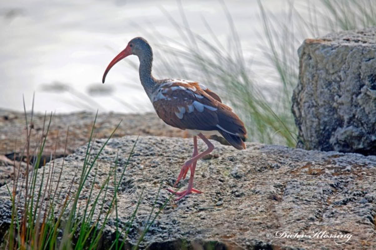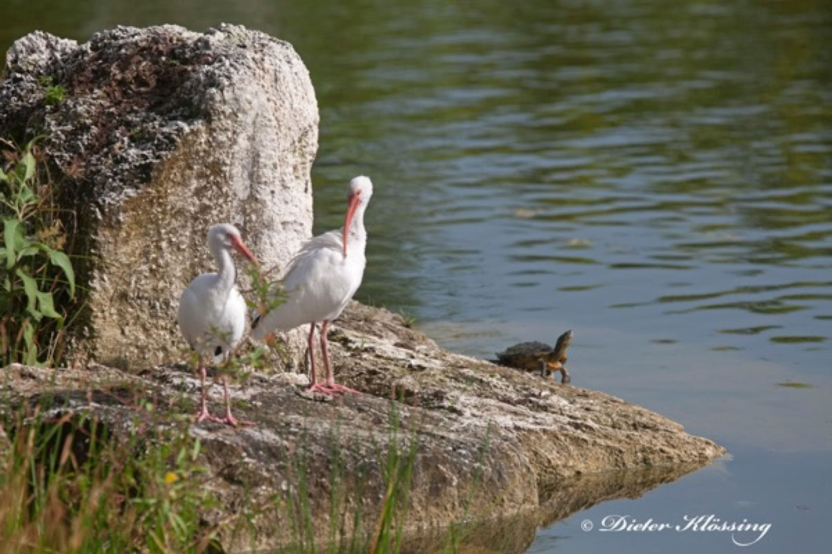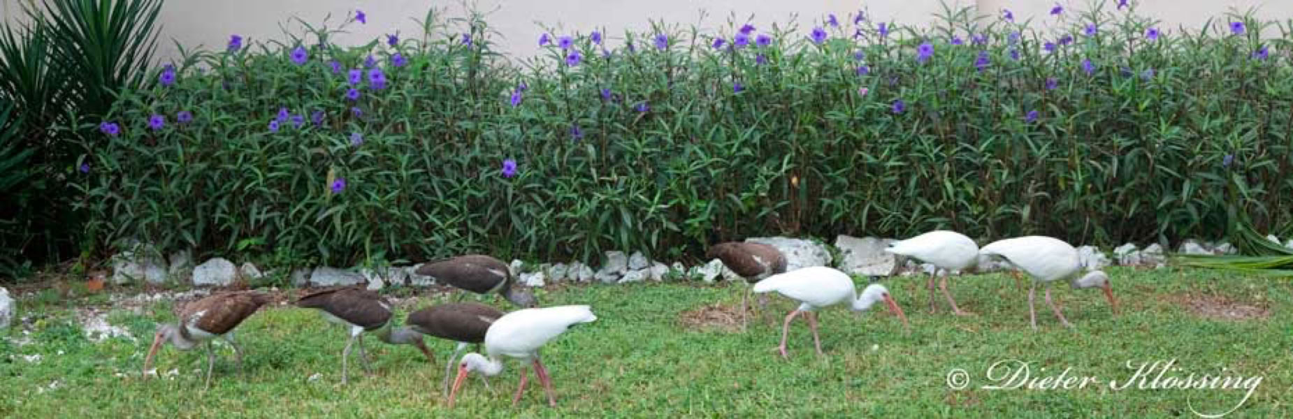 Junge, dunkelbraune Ibise suchen sich zusammen mit den Eltern mitten in der Stadt ihr Futter. Wo sollen sie auch hin. Ist ziemlich alles Land bebaut...