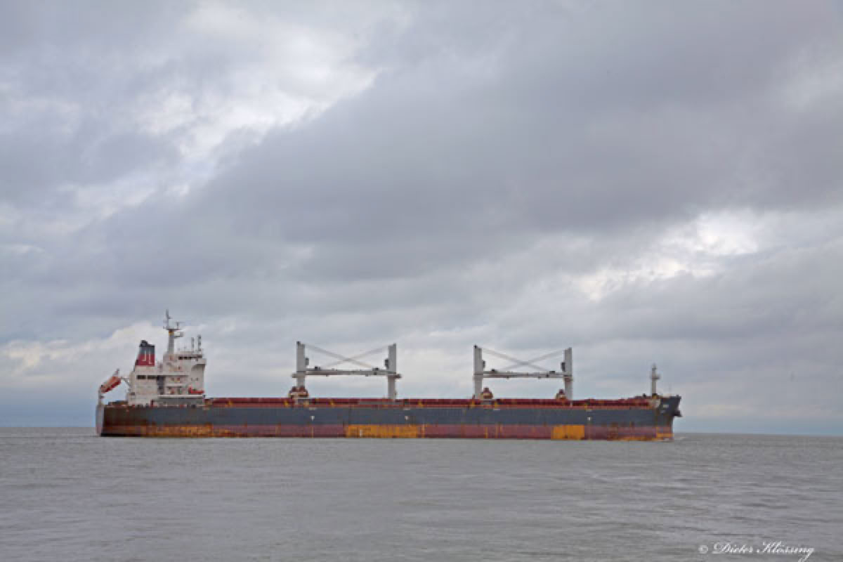 Die Aufnahme entstand 2008 auf der Nordsee. Am 19. Oktober 2017, als das hier bearbeitet wurde, befand sich der Bulk Carrier an der Westküste Indiens vor Mumbai zur Ortszeit 21:52 (UTC +5.5). Breite/Länge: 18.9447403° / 72.8445129°. Die Geschwindigkeit betrug 0,0 kn denn es war moored - festgemacht. Wind: 5,5 kn aus Nord (337°), Temperatur: 30° C. Fehlt nur noch das Alter des Kapitäns. Aber dafür muss man sich wohl bei Marine Trafic oder Vesselfinder registrieren. Verblüffend was man alles im Netz findet.